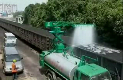 抑塵灑水車又稱多功能抑塵灑水車,煤廠抑塵車,礦山灑水車,抑塵噴灑車,屬于煤炭裝運點噴灑抑塵固化劑裝置中的一種,主要服務(wù)于鐵、道路及其它領(lǐng)域,當(dāng)火車運送煤炭時,抑塵車可對每節(jié)火車上的煤炭進(jìn)行固化,形成保護(hù)膜,減少污染。廈工楚勝生產(chǎn)的抑塵車用于鐵路煤炭運輸煤揚塵污染防治,也廣泛用于其它散裝物料運輸過程防揚塵污染以及渣料場,儲煤場,建筑工地,汽車運煤揚塵,固沙,鋼鐵建材,水泥,企業(yè)各種露天料場生態(tài)護(hù)坡等方面。該車同時具備灑水車功能,在噴灑作業(yè)時可實現(xiàn)360度旋轉(zhuǎn),后平臺高炮可同時進(jìn)行旋轉(zhuǎn),并可電子遙控操作。撥打15871252888或登陸m.860353.com.cn.咨詢。