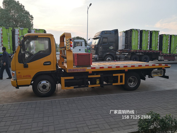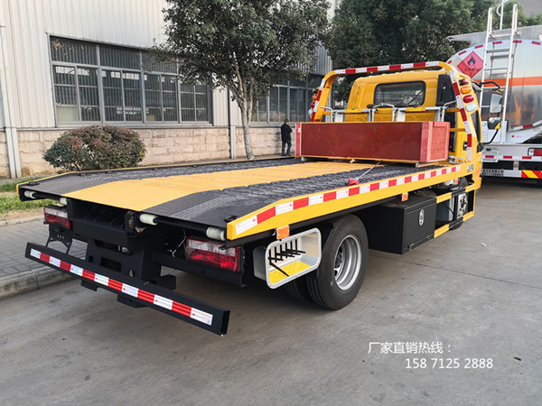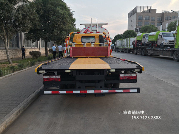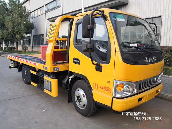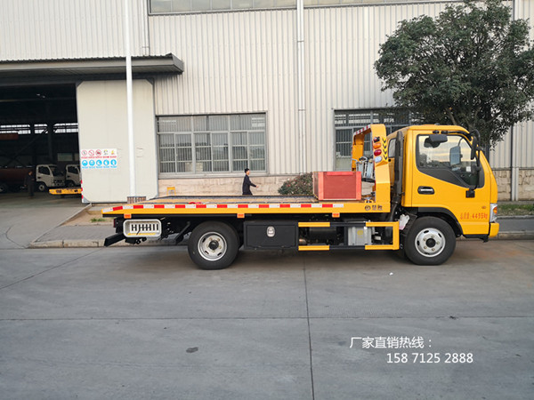 四川江總這次購買的清障車是江淮藍(lán)牌平板一拖二清障車,該車已與今早順利交車。