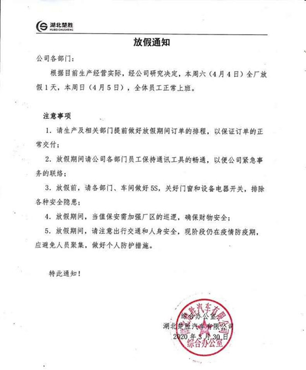 人們剛剛受疫情影響,稍微緩過來一些,轉(zhuǎn)眼明天就是清明節(jié)了。今年的清明節(jié)有沒有什么特別的呢?有沒有假期呢?下面我們一起來看看湖北楚勝清明節(jié)安排吧!