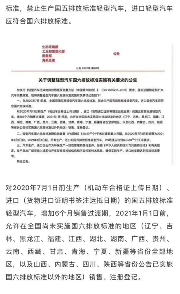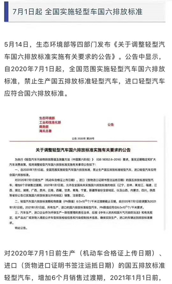 好消息!好消息!好消息!重要的事情說三遍,輕型車自2020年7月1日起實(shí)施,這個想必大家多少都聽說過,F(xiàn)在告訴大家一個好消息,由于受市場影響,為了落實(shí)近期穩(wěn)定和擴(kuò)大汽車消費(fèi)政策,現(xiàn)將部分輕型車國六排放的實(shí)施推遲到2021年1月1日起實(shí)行,具體內(nèi)容與下。