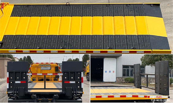 該車主要用于道路清障,主要專用裝置為平板、絞盤、鋼絲繩、油缸.該車無托舉功能.側(cè)防護材料為Q235,螺栓連接;后防護材料為Q235,焊接,截面尺寸(mm):100x50,下緣離地高430mm.僅用軸距3365mm.準乘人數(shù)/整備質(zhì)量對應(yīng)關(guān)系:2人/2865kg,3人/2800kg.ABS型號廠家為YF8/武漢元豐汽車電控系統(tǒng)有限公司.選裝ABS型號廠家為:VIE ABS-Ⅱ/浙江萬安科技股份有限公司,CM4XL-4S/4M/廣州瑞立科密汽車電子股份有限公司.選裝駕駛室,選裝鋁合金輪輞;選裝平板樣式,選裝后部上尾板.整備質(zhì)量包含冷卻液、潤滑劑、停車楔、反光背心、三角警告牌.選裝滑輪座樣式,選裝平板尾端樣式. | ||