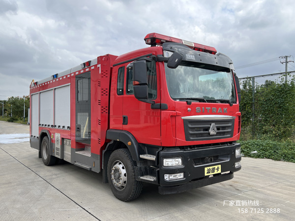 CSC5180GXFSG60/S6型水罐消防車又叫重汽汕德卡6噸水罐消防車,該車采用ZZ5206N501GF1底盤改裝而成,原裝單排駕駛室,配備獨(dú)立乘員室,乘員可達(dá) 2+6 人。水罐容積:6.300立方米,水罐尺寸:2920×1500×1500mm。裝配CB10/60消防泵,PSKD8/50W消防炮 ,流量50L/s,對應(yīng)壓力 0.8MPa,最大承壓 1.3MPa,水射程≥60m,可 360°旋轉(zhuǎn)。該車適用于山地崎嶇、林區(qū)坡陡、雨雪泥濘路況、城市、油田、油庫、機(jī)場、碼頭等場所,此類車型可充分滿足越野、四驅(qū)、穩(wěn)定、罐體儲(chǔ)水量大的用車要求,車身更高、發(fā)動(dòng)機(jī)動(dòng)力強(qiáng)勁,此車視野開闊,越野性能好,是一款越野消防車,具體詳情請咨詢:158 7125 2888(微信同號)