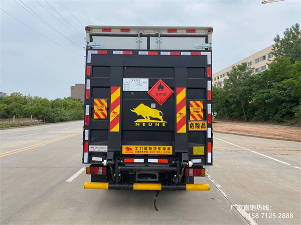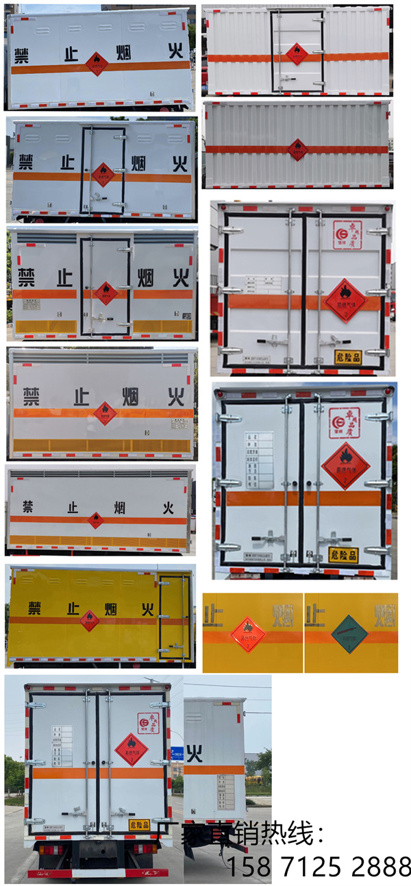CSC5040XRQJ6型易燃?xì)怏w廂式運(yùn)輸車又叫藍(lán)牌江鈴順達(dá)4.15米易燃?xì)怏w廂式運(yùn)輸車,該車采用JX1041TG26底盤改裝而成,廂體頂部封閉,不可開(kāi)啟,選裝開(kāi)門型式及位置,選裝不帶側(cè)開(kāi)門,.選裝瓦楞板結(jié)構(gòu)(復(fù)合板結(jié)構(gòu)廂體:底板材質(zhì)為Q235,厚度3mm,側(cè)板為外冷扎鋼板+中間阻燃泡沫+內(nèi)純鋁板,厚度42mm;瓦楞板結(jié)構(gòu)廂體:底板材質(zhì)為Q235,厚度3mm,側(cè)板為冷扎鋼板,厚度1.2mm),選裝開(kāi)百葉窗,選裝液壓尾板樣式.選裝不帶液壓升降尾板結(jié)構(gòu)。該車適用于運(yùn)輸危險(xiǎn)品,運(yùn)輸具獨(dú)立容器(瓶)包裝的物品,危險(xiǎn)貨物類項(xiàng)號(hào):2.1,2.2;運(yùn)輸易燃?xì)怏w時(shí)掛2.1類警示牌,運(yùn)輸非易燃無(wú)毒氣體時(shí)掛2.2類警示牌.具體詳情請(qǐng)咨詢15871252888(微信同號(hào))