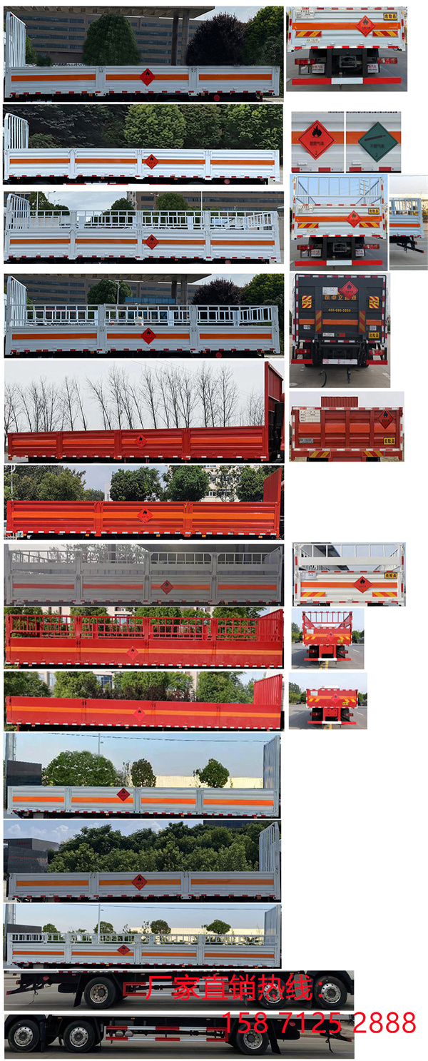 CSC5266TQPZ6型氣瓶運(yùn)輸車又叫重汽汕德卡小三軸倉欄氣瓶運(yùn)輸車,該車采用ZZ1266N56CGF1K底盤改裝而成,廂長可做9.6米、9.5米、8.6米、7.7米供用戶選擇,選裝尾板樣式,選裝無后尾板,選裝欄板樣式,選裝無柵欄,選裝柵欄樣式。該車適用于運(yùn)輸危險(xiǎn)品,運(yùn)輸具獨(dú)立容器(瓶)包裝的物品,危險(xiǎn)貨物類項(xiàng)號:2.1,2.2;運(yùn)輸易燃?xì)怏w時(shí)掛2.1類警示牌,運(yùn)輸非易燃無毒氣體時(shí)掛2.2類警示牌.具體詳情請咨詢158 7125 2888(微信同號)