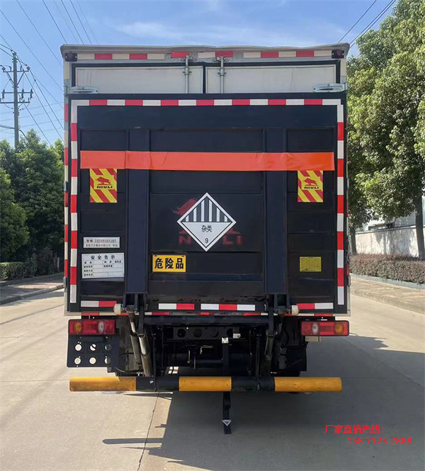 CSC5126XZWEH6型雜項危險物品廂式運輸車又叫東風華神7噸雜項危險物品廂式運輸車,該車采用EQ1126GL6DJ底盤改裝而成,廂長可做5.15米、4.75米供用戶選擇,額定載質(zhì)量:6965kg,6900kg、7265kg、7200kg。廂體頂部封閉不可開啟,廂體側(cè)面選裝不同形式側(cè)開門及開門位置或不帶側(cè)門.選裝百葉窗,選裝瓦楞板結(jié)構(gòu),選裝后門和側(cè)門雙門桿.選裝液壓尾板樣式.選裝不帶液壓升降尾板結(jié)構(gòu)。該車用于運輸具有獨立容器包裝的:含廢油物質(zhì),含鉻廢物,含銅廢物,含鎘廢物,含鉛廢物,含鎳廢物,廢棄電池.危險貨物類項號:9。運輸環(huán)境保護部令2016 部令 第39號《國家危險廢物名錄》中危險廢物編號:HW08,HW21,HW26,HW31,HW22,HW46,HW48,HW49。具體詳情請咨詢158 7125 2888(微信同號)