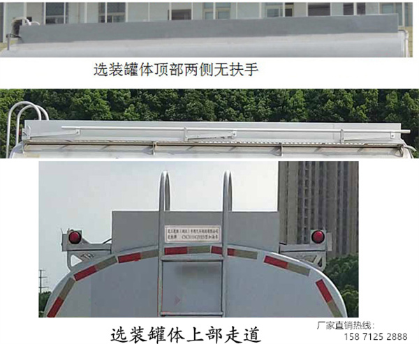 CSC5125GPG6型普通液體運(yùn)輸車又叫東風(fēng)多利卡11.2方普通液體運(yùn)輸車,該車采用EQ1125SJ8CDC底盤改裝而成,罐體總?cè)萘?11.2立方米,罐體有效容積:10.67立方米,罐體外形尺寸(長×寬×高)(mm):4800×2050×1460.可根據(jù)用戶選裝罐體上部上走道,選裝兩側(cè)無扶手,選裝電瓶位置,選裝氣瓶位置,選裝左側(cè)工具箱。選裝操作箱及工具箱不同鎖具外觀。具體詳情請咨詢:158 7125 2888(微信同號)