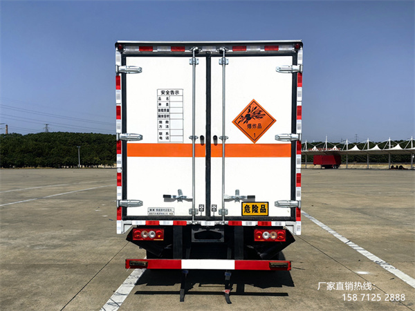 該車適用于運輸危險品.廂體頂部封閉,不可開啟.該車用于運輸具有獨立容器(瓶)包裝的物品,危險貨物運輸車輛類型EX/III.類項號:1.1B,1.1C,1.1D,1.1G,1.2C,1.2D,1.2G,1.3C,1.3G,1.4C,1.4D,1.4G.側(cè)、后防護材料均為Q235,螺栓連接,后防護截面尺寸(mm)100×50,下邊緣離地高400mm.僅選用排氣管前置、限速裝置(限速80km/h)、前輪盤式制動及子午線輪胎的底盤;轉(zhuǎn)向輪裝備輪胎爆胎應(yīng)急防護裝置.安裝帶有衛(wèi)星定位功能的行駛記錄儀.ABS系統(tǒng)控制方式為4S/4M,氣剎:ABS型號為CM4XL-4S/4M,生產(chǎn)廠家為廣州瑞立科密汽車電子股份有限公司.液剎:ABS型號為CM4YL,生產(chǎn)廠家為廣州瑞立科密汽車電子股份有限公司.液剎:ABS型號為CM0953YL,生產(chǎn)廠家為廣州瑞立科密汽車電子股份有限公司.發(fā)動機/油耗值(L/100Km)對應(yīng)關(guān)系為:Q23-115C60/11.40,Q23-115E60/11.12,Q23-132E60/11.17.僅選用2850mm軸距.整車外形尺寸長/后懸對應(yīng)關(guān)系為(mm):5650/1670,5450/1470,5250/1270.選裝直接供電式ETC車載裝置.整備質(zhì)量含備胎,滅火器及隨車工具;貨廂重量為850kg,790kg;材質(zhì)/厚度:底板材質(zhì)為Q235,厚度3mm,側(cè)板為外Q235+中間阻燃泡沫+內(nèi)純鋁板,厚度42mm.隨底盤選裝新前格柵及新logo.選裝后門雙拉桿. | ||