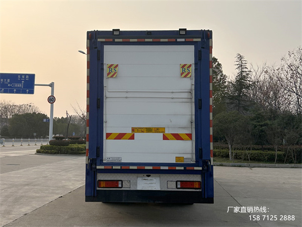 該車專用裝置為箱體,主要用于畜禽運(yùn)輸.車廂底板至頂部高度2700,2600,2560mm.尾板收起狀態(tài)水平長(zhǎng)度為250mm,尾板質(zhì)量為450kg.側(cè)防護(hù)材料為鋁合金6061-T6材質(zhì),螺栓連接;后防護(hù)為裙板結(jié)構(gòu),材料為Q235,連接方式為連接在液壓尾板下部.下邊緣離地高485mm.安裝具有衛(wèi)星定位功能的行駛記錄儀.安裝限速裝置,限速89km/h,80km/h.ABS型號(hào)/企業(yè):ABS-E 4S/4M/威伯科汽車控制系統(tǒng)(中國(guó))有限公司,CM4XL-4S/4M/廣州瑞立科密汽車電子股份有限公司,ABS-E 4S/4M/采埃孚商用車系統(tǒng)(青島)有限公司,ABS 8/東科克諾爾商用車制動(dòng)系統(tǒng)(十堰)有限公司.發(fā)動(dòng)機(jī)/油耗值(L/100km)對(duì)應(yīng)關(guān)系為:YCK08330-60/32.16,D6.7NS6B320/30.2,YCK08300-60/32.16,YCK08330-61A/32.16.該車型可選裝直接供電式ETC車載裝置.車輛后部作業(yè)燈具僅用于作業(yè)狀態(tài)下使用,車輛行駛過(guò)程中關(guān)閉.隨底盤選裝新面罩,選裝H7駕駛室. | ||