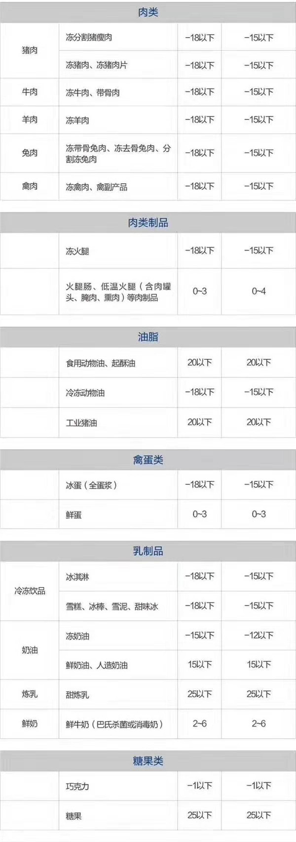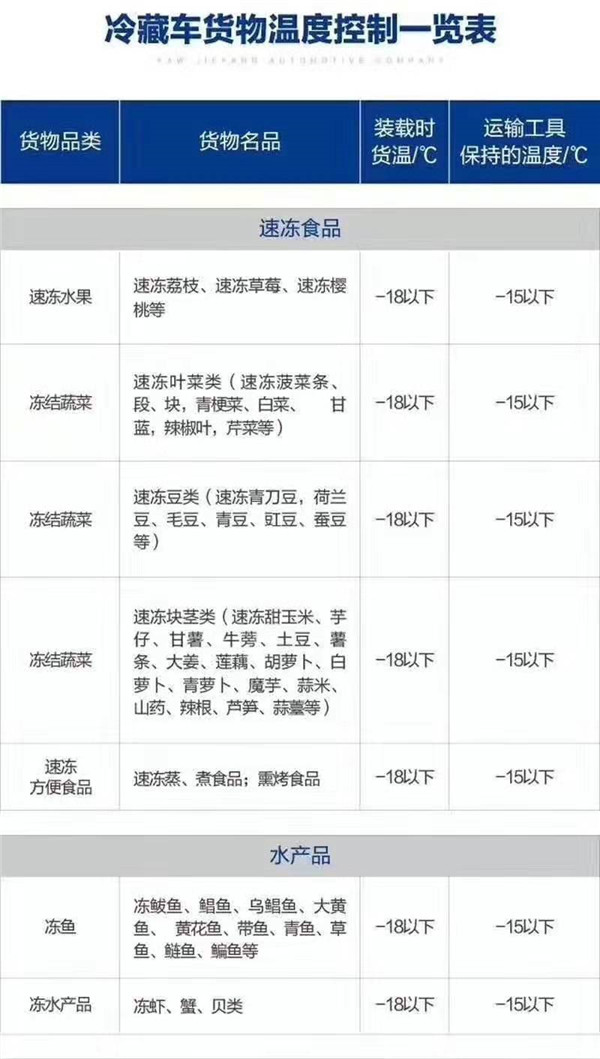 湖北楚勝冷藏車運輸貨物溫度一覽表