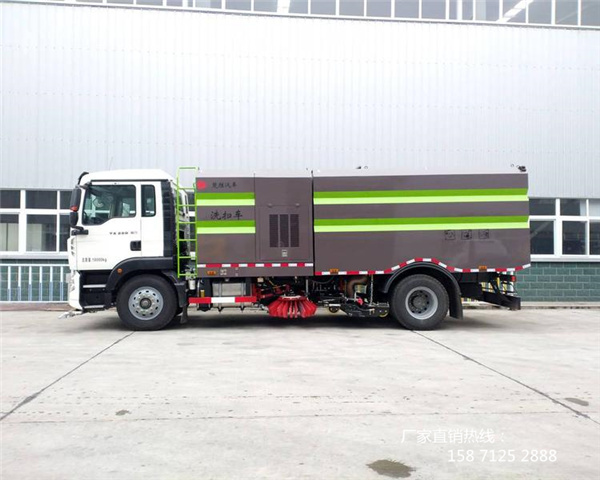 CSC5180TXSZ6型洗掃車又叫重汽豪沃16方洗掃車。該車集掃路車、灑水車和高壓清洗車功能于一體,具備路面清掃、路面洗刷、高壓清洗、低壓沖洗、路緣石洗刷、垃圾收集、污水回收、噴霧降塵和道路隔離墻清洗、小廣告清洗等多種作業(yè)功能。