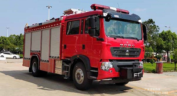CSC5171GXFSG50/Z6水罐消防車又叫重汽豪沃5噸消防車。該車采用中國重汽濟(jì)南卡車有限公司ZZ5207TXFV471GF5型消防車專用汽車底盤,原裝雙排駕駛室,乘員2+4人,該車駕乘舒適輕便。上裝采用內(nèi)藏式水罐,整車載液量為水5200kg,器材箱采用高質(zhì)量鋁合金卷簾門。底盤取力,發(fā)動(dòng)機(jī)型號為MC07H.35-60,最大功率257kW,通過萬向聯(lián)軸器驅(qū)動(dòng)安裝在汽車尾部泵房里的上海茸申CB10/80型常壓消防泵,可在1.0MPa下穩(wěn)定輸出80L/s的流量;車頂安裝成都威斯特消防器材有限責(zé)任公司生產(chǎn)的PS8/80W型消防炮,流量80L/s,對應(yīng)壓力1.0MPa,純水射程85m,可360°旋轉(zhuǎn)。車輛配備原裝美國冠軍電動(dòng)絞盤N16800XF,可牽引7左右噸物品, 采用日本本田發(fā)電機(jī)SHT11500,功率10KW,車頂配有上海華度升降照明系統(tǒng)YZH4-5.0CF ,起升離地高度可達(dá)7.6米。同時(shí)該車具有比功率大、綜合性能強(qiáng)、操控集中簡便等特點(diǎn)。