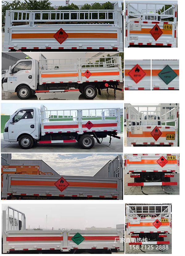 CSC5045TQP6型氣瓶運輸車又叫藍牌東風途逸柴油倉欄氣瓶運輸車,該車采用EQ1045SJ16DCWXP底盤改裝而成,廂長可做3.78米、3.4米、3.1米、2.8米供用戶選擇,選裝無柵欄,選裝貨箱箱板結(jié)構。該車適用于運輸危險品,運輸具獨立容器(瓶)包裝的物品,危險貨物類項號:2.1,2.2;運輸易燃氣體時掛2.1類警示牌,運輸非易燃無毒氣體時掛2.2類警示牌.具體詳情請咨詢158 7125 2888(微信同號)