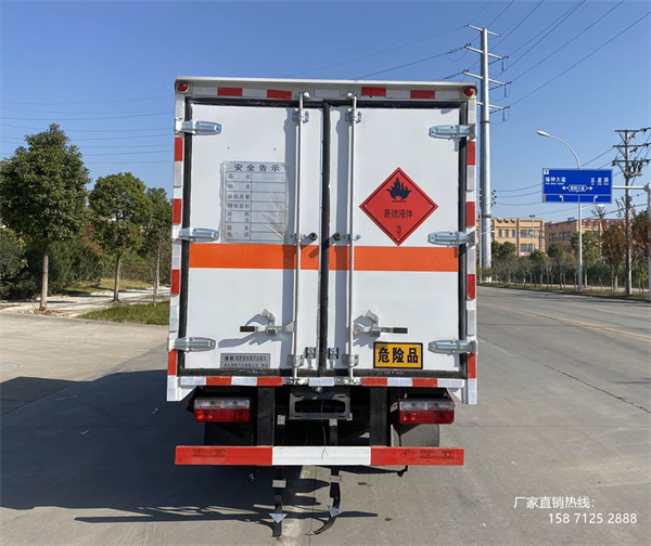 CSC5045XRY6型易燃液體廂式運(yùn)輸車又叫藍(lán)牌東風(fēng)途逸易燃液體廂式運(yùn)輸車,該車采用EQ1045SJ16DCWXP底盤改裝而成,廂長可做多種規(guī)格供用戶選擇,額定載質(zhì)量:1865kg,1995kg。廂體頂部封閉不可開啟,廂體側(cè)面及后面板選裝平面板結(jié)構(gòu)、瓦楞板結(jié)構(gòu);選裝百葉窗。復(fù)合板結(jié)構(gòu)廂體:底板材質(zhì)為Q235,厚度3mm,側(cè)板為外冷扎鋼板+中間阻燃泡沫+內(nèi)純鋁板,厚度42mm;瓦楞板結(jié)構(gòu)廂體:底板材質(zhì)為Q235,厚度3mm,側(cè)板為冷扎鋼板,厚度1.2mm。該車用于運(yùn)輸具有獨(dú)立容器(瓶)包裝的:黏合劑(含易燃液體),涂料(包括色漆、噴漆、搪瓷、著色劑、蟲膠、清漆、拋光劑、液態(tài)填料和液態(tài)噴漆基料)或涂料的相關(guān)材料(包括涂料稀釋劑或還原劑),涂料溶液(包括用于工業(yè)或其他用途的表面處理劑或涂料,例如車輛的底漆、圓桶或琵琶桶的面料),苯,甲醇,乙醇,丙酮,甲苯,二甲苯、煤油、機(jī)油,類項(xiàng)號(hào):3類。具體詳情請咨詢158 7125 2888(微信同號(hào))