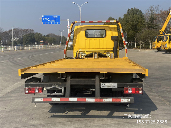 1、 本公司生產的清障車采用粵海工藝技術,清障車所有鋼構件均進行酸洗、磷化、陰極電泳漆處理,構件可以長期不銹蝕,從而延長了使用壽命。平板面采用模具沖壓式凸紋板分塊組成,并噴附防滑科粒狀物質,磨擦附著力強,既減輕了整備質量又增加了托舉能力。