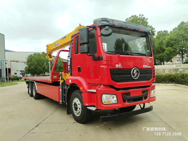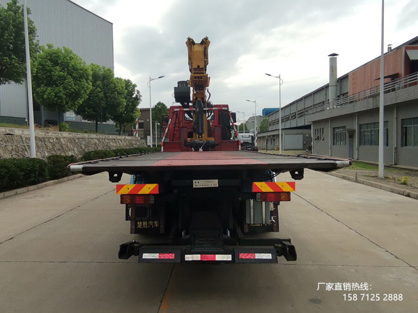 平板帶吊機(jī)多功能清障車的主要特點(diǎn)是在平板清障車的基礎(chǔ)上加裝隨車起吊裝置,包括吊機(jī)起重、支承架和托牽機(jī)構(gòu)等,并由液壓系統(tǒng)控制完成起吊、牽引、拖托等多種功能。當(dāng)平板帶吊機(jī)多功能清障車在作業(yè)的過(guò)程中,起動(dòng)液壓控制操作按鈕,起吊裝置便開(kāi)始工作,可以輕松將要處理的故障車輛吊起到該清障車的平板和支承架上,完成裝載的過(guò)程便可迅速將故障車輛運(yùn)走,可減少故障車輛的每二次損害,更安全快捷。