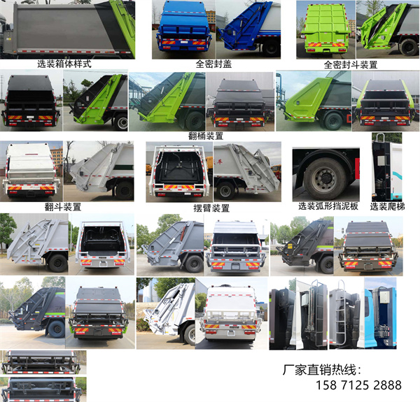 CSC5180ZYS6型壓縮式垃圾車(chē)又叫東風(fēng)D9大多利卡10方壓縮式垃圾車(chē),該車(chē)采用EQ1185LJ9CDE 底盤(pán)改裝而成。該車(chē)主要專用裝置由箱體、填料器總成、壓縮系統(tǒng)等組成,用于垃圾的收集與清運(yùn)。可根據(jù)用戶要求選裝方形或弧形箱體,選裝弧形擋泥板,選裝全密封蓋裝置。選裝后部工作裝置。選裝爬梯樣式。選裝電瓶,尿素罐,儲(chǔ)氣筒左右安裝位置.選裝油管布局.選裝后翻轉(zhuǎn)架樣式,選裝控制系統(tǒng)及液壓油箱樣式和位置.選裝尾部導(dǎo)流板結(jié)構(gòu)。具體詳情請(qǐng)咨詢:158 7125 2888(微信同號(hào))