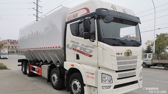 散裝飼料運輸車是在載貨汽車或二類底盤的基礎(chǔ)上,選用優(yōu)質(zhì),高強度鋼板焊接成型罐體,裝備電動或液壓絞龍卸料系統(tǒng)而成的一種專用運輸車輛。飼料運輸車是由底盤、裝載飼料罐體、出料絞龍系統(tǒng)和電液操作系統(tǒng)等部分組成。主要應(yīng)用于各種飼料廠,大型養(yǎng)殖廠等顆粒狀飼料裝卸運輸,也可用來運輸某些無腐蝕性顆粒狀原料,如制藥廠粉料和糧庫周轉(zhuǎn)等。 解放前四后八40方散裝飼料運輸車,該車分4倉,可同時裝載不同飼料。全液壓驅(qū)動:液壓控制轉(zhuǎn)向左右各180度,美國進口液壓雙聯(lián)泵,進口液壓馬達,外接三項電源驅(qū)動,采用西門子電機,德力西電器,前部扶梯,罐體上方配有防護欄,安全性高。 | |||